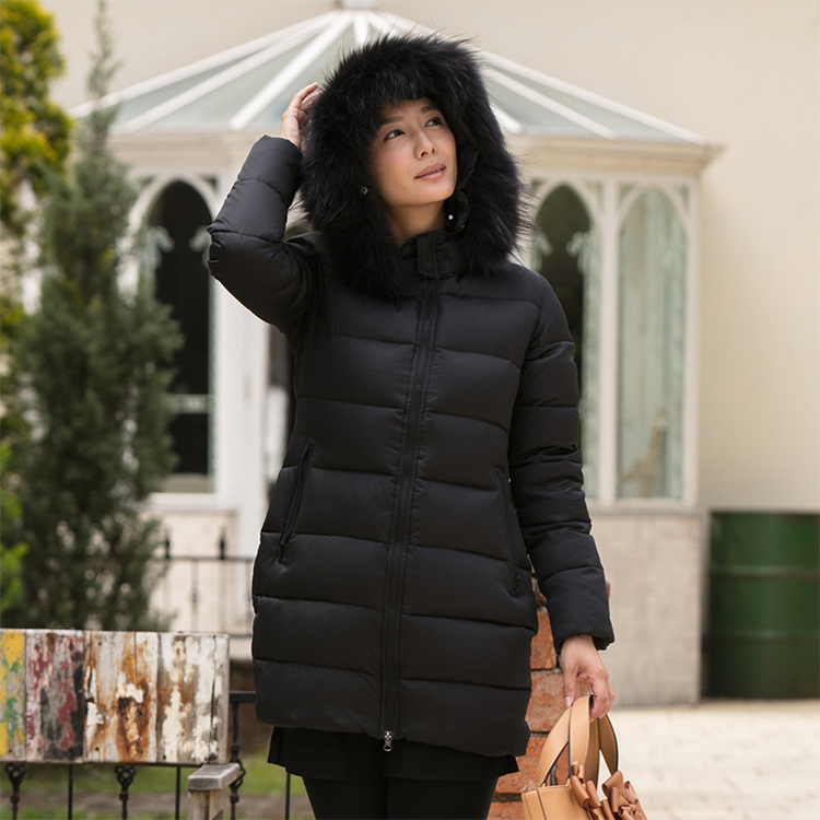 ◆シングルダウンコート ヒップ丈 カジュアルコート グースダウン、フード取り外し不可 取り外し可能ラクーン付